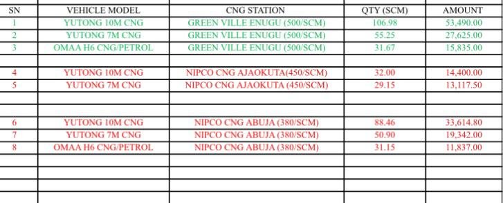 Total standard cubic meter (SCM) of CNG consumed by the yutong 10meter 40 seater city bus locally assembled in Anambra to Abuja is 227.44 SCM that’s approximately N101,504.8 and still having enough CNG left to power to vehicle for another 280km the diesel model will consume approximately 450 litres which is about N472,500.
